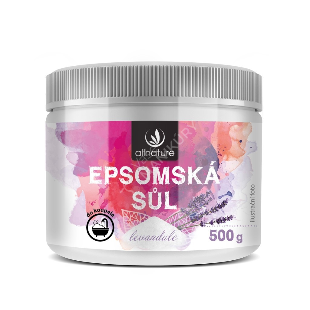 - Epsomská minerální sůl s levandulí – Uvolňující sůl do koupele s vysokým obsahem hořčíku a síranu. Pomáhá zmírnit otoky nohou, detoxikuje a má relaxační účinky díky vůni levandule, která podporuje lepší spánek a odbourání stresu.