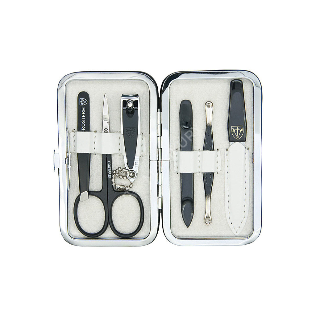 Sada na manikúru je vybavena nástroji z kvalitní poniklované oceli od německého výrobce Kellermann.