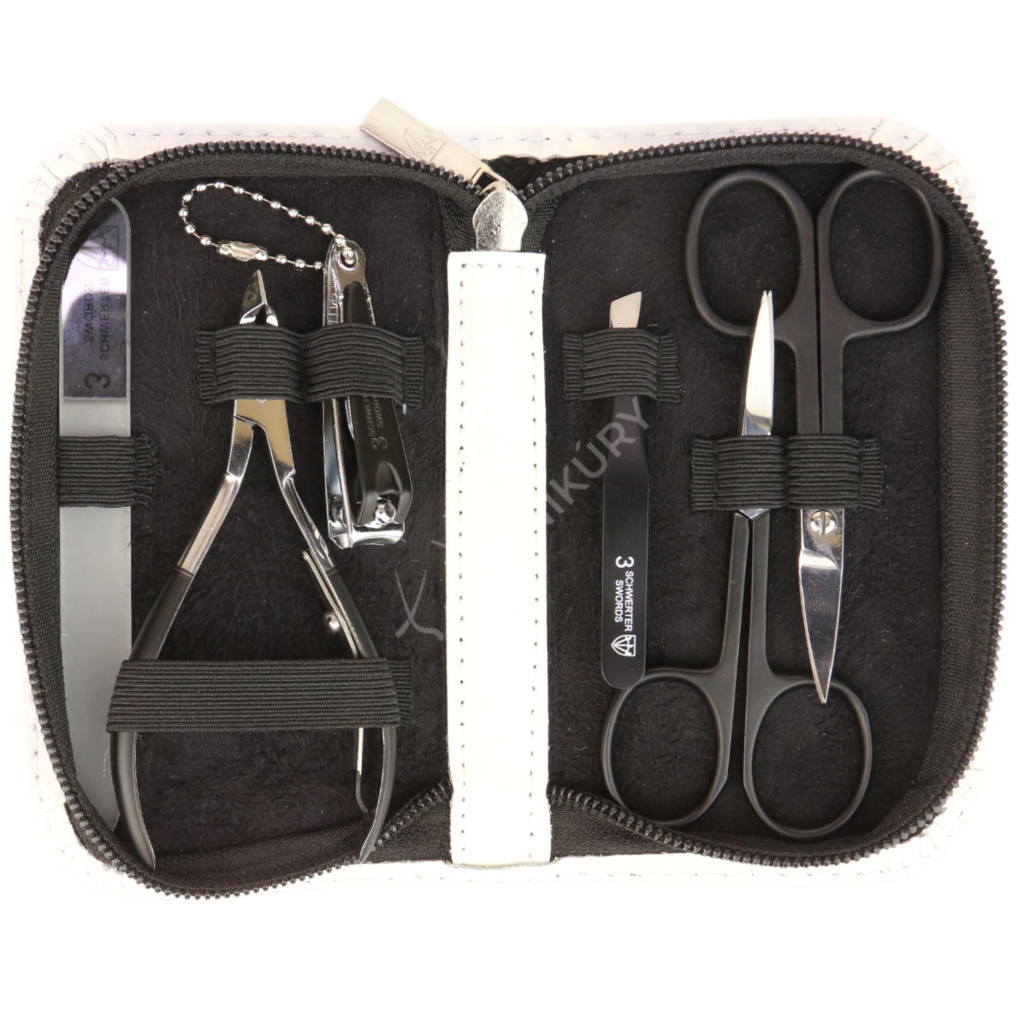 Elegantní 6dílná bílá dámská kožená manikúra s kvalitními nástroji německého výrobce Kellermann.