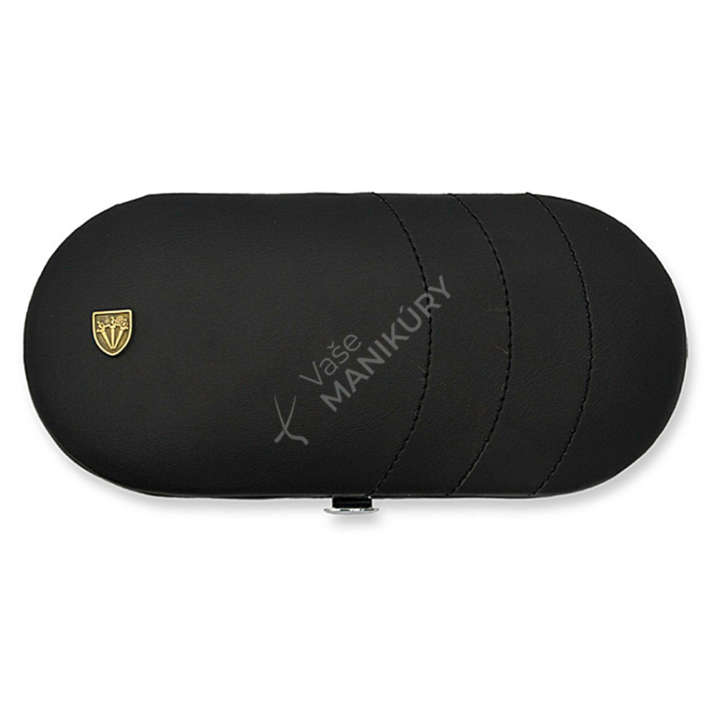 Krásná dámská sada na manikúru pro ženy. Černé pouzdro je vyrobeno z jemné přírodní hovězí kůže s pevným kovovým rámem. Látka na vnitřní straně pouzdra je na povrchu sametová, jemná a velmi příjemná na dotek.