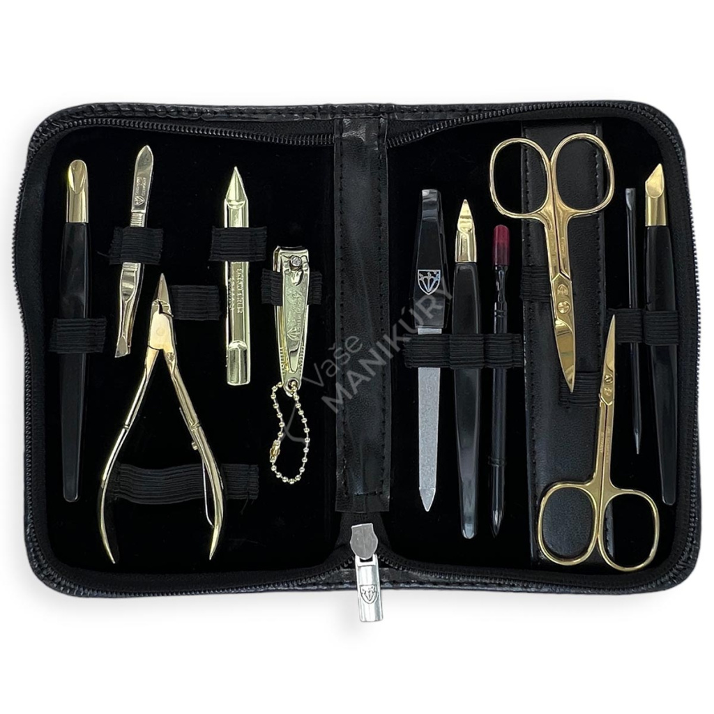 Nadstandardně vybavená 12dílná sada na manikúru s pozlacenými nástroji německé značky Kellermann ve špičkové kvalitě made in Solingen.