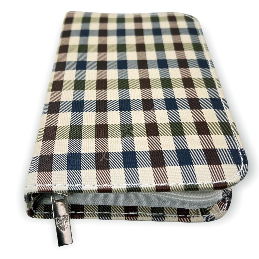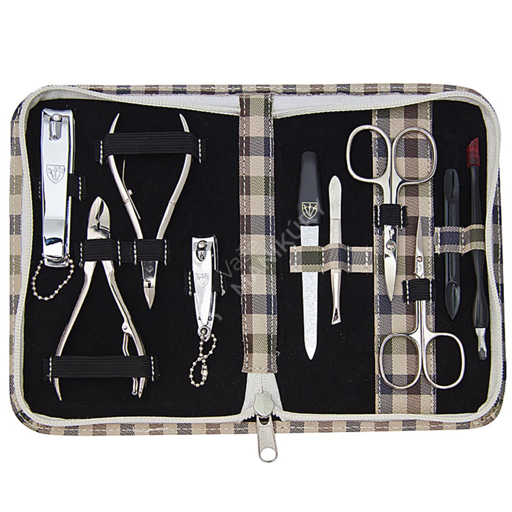 Sada je vybavena nástroji z kvalitní poniklované oceli od německého výrobce Kellermann. Nástroje jsou uloženy v pouzdře s módním kostkovaným designem a zavíráním na zip.