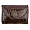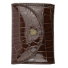 Krásné pouzdro manikúry se zavíráním na patent je vyrobeno ze syntetické kůže v sytě hnědé barvě a upraveno do vzhledu krokodýlí kůže.