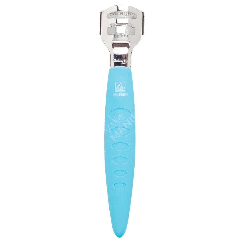 - Seřezávač zrohovatělé kůže (růžový) – Efektivní nástroj na odstranění tvrdé kůže z chodidel s jednoduchou výměnou žiletek. Vyroben z kvalitní chromované oceli s ergonomickou rukojetí.