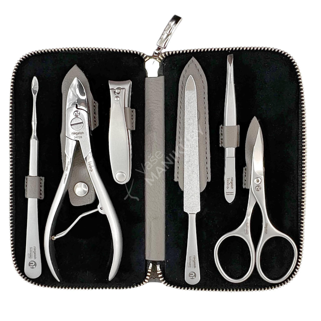 NIEGELOH SOLINGEN Kožená sada na manikúru 85227 "Cafe do Brazil XL" lungo - šedá