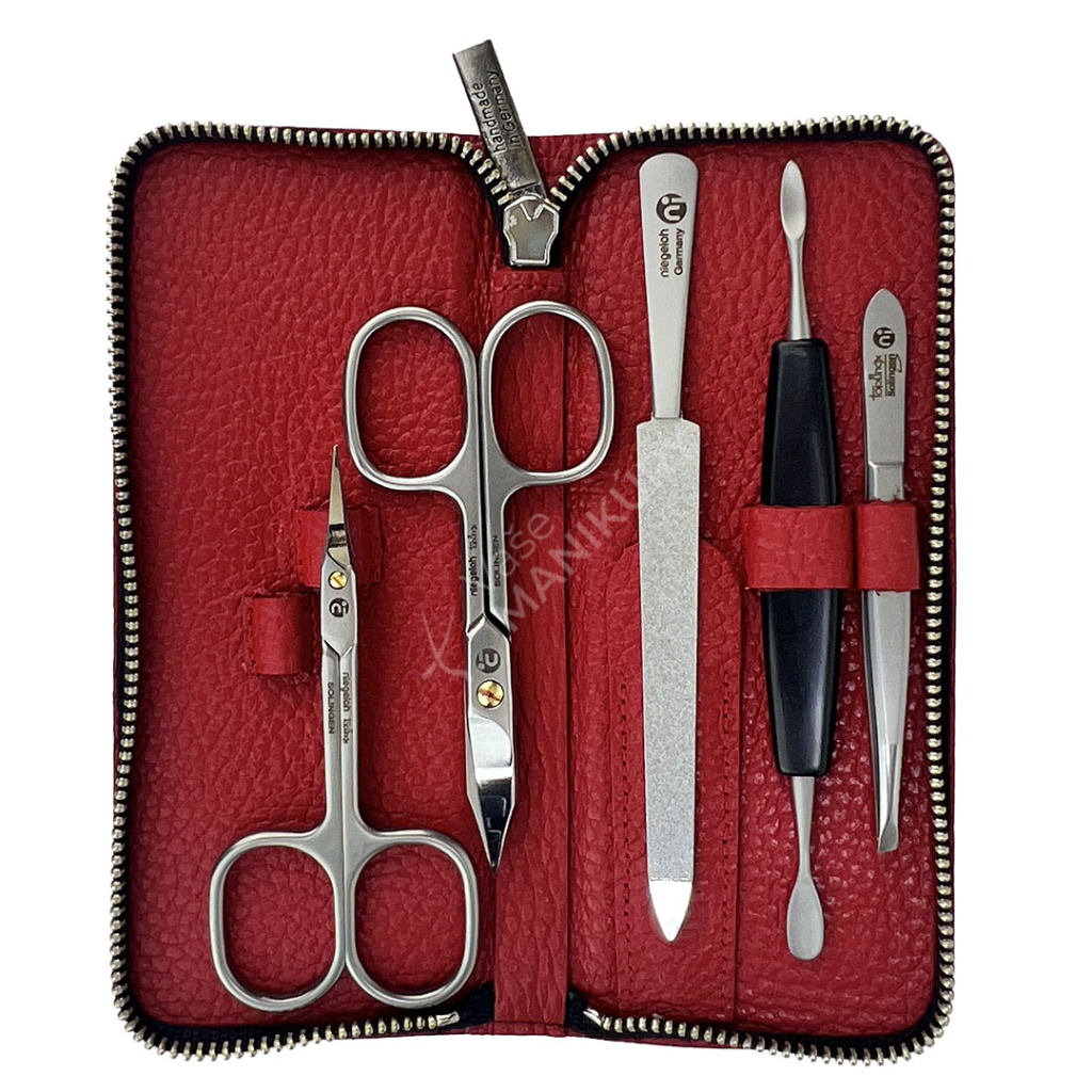 Kolekce luxusních manikúr Niegeloh je určena všem, kteří od své manikúrní sady očekávají jen tu nejvyšší kvalitu. Tato manikúrní sada kombinuje luxus měkkého červeného koženého pouzdra s praktičností pohodlného zapínání na zip. Pouzdro je vyrobeno z přírodní hovězí kůže, která je jemná a příjemná na dotek. Také vnitřní strana je zhotovena z prvotřídní pravé kůže.