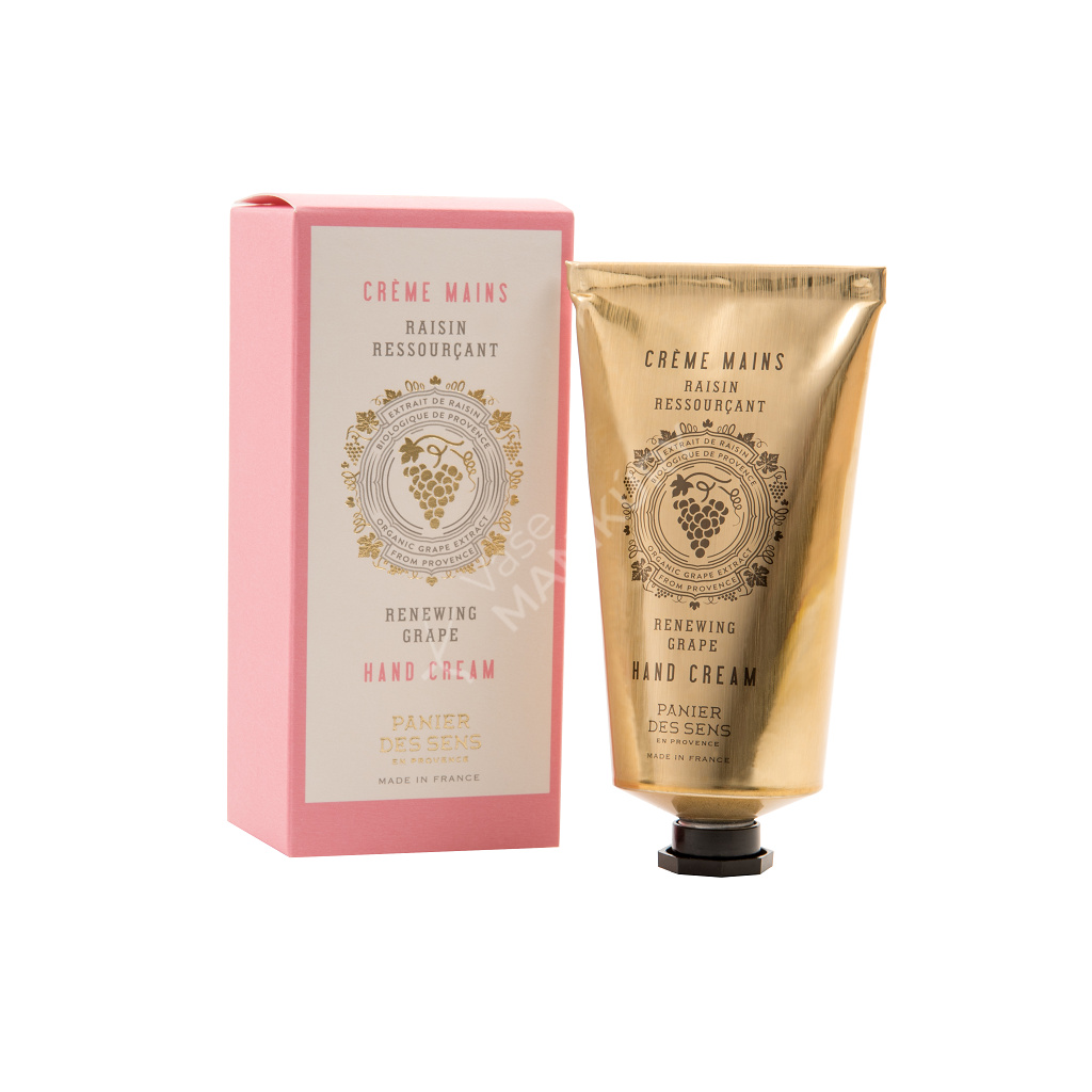 Luxusní krém na ruce Panier des Sens s výtažkem z bílých hroznů a bambuckým máslem vyživuje, chrání a zjemňuje pokožku.Je vhodný pro unavenou pokožku, vystavenou městskému ovzduší a počasí (slunci, větru, chladu). Krém zanechává pokožku sametově hebkou, tonizovanou, pružnou a zářivou.