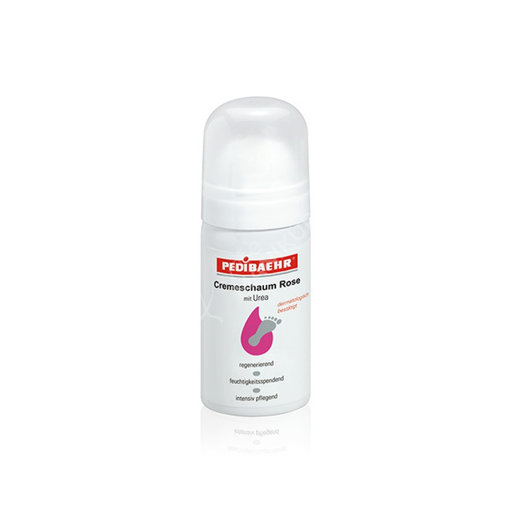 Krémová pěna ROSE k péči o suchou pokožku nohou je obohacena o cenný olej z damašské růže, který má uklidňující účinek. Dále osahuje allantoin, který pokožku zjemňuje a poskytuje jí ochranu a 10% močoviny (urea), která spolu s kyselinou hyaluronovou dodávají pokožce vlhkost. Glycerin a olej z meruňových jader zajišťují pokožce výživu a činí ji hladkou a pružnou. Pěna je svým jedinečným složením vhodná k denní péči o suchou a drsnou pokožku nohou. Při pravidelném používání hrubá a zrohovatělá kůže měkne a zjemňuje se.