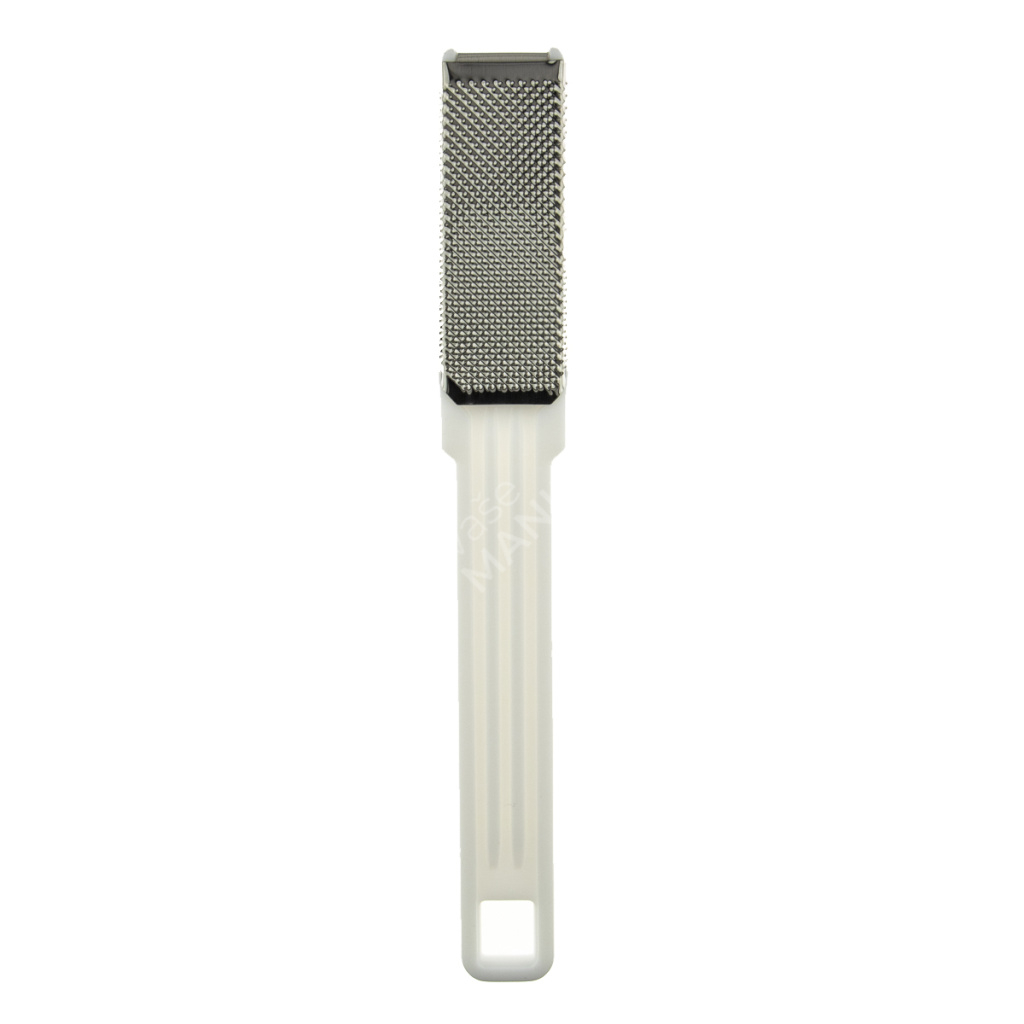 Rašple se používá k odstranění ztvrdlé kůže na chodidlech a je určena na domácí pedikúru. Povrch kůže zanechává jemný a hladký. Samotná rašple je vyrobena z nerezové oceli a rukojeť je z plastu.