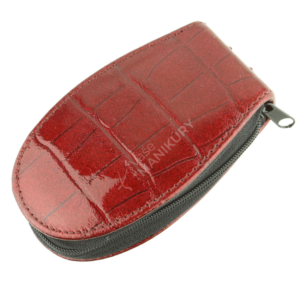 Všechny nástroje jsou přehledně uloženy v červeném pouzdru uzavíratelném na zip. Pouzdro je vyrobeno z pravé kůže se vzorem krokodýlí kůže. Uvnitř najdete nůžky Solingen, safírový pilník Solingen a další nástroje na úpravu nehtů z kvalitní nerezové oceli v matové úpravě. Nerezové výrobky mají velmi dlouhou životnost.