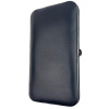 Krásné pouzdro s kovovým rámem je vyrobeno z pravé kůže v černé barvě. Dvoudílný ocelový pochromovaný rám umožňuje pohodlné a spolehlivé otevírání manikúry.