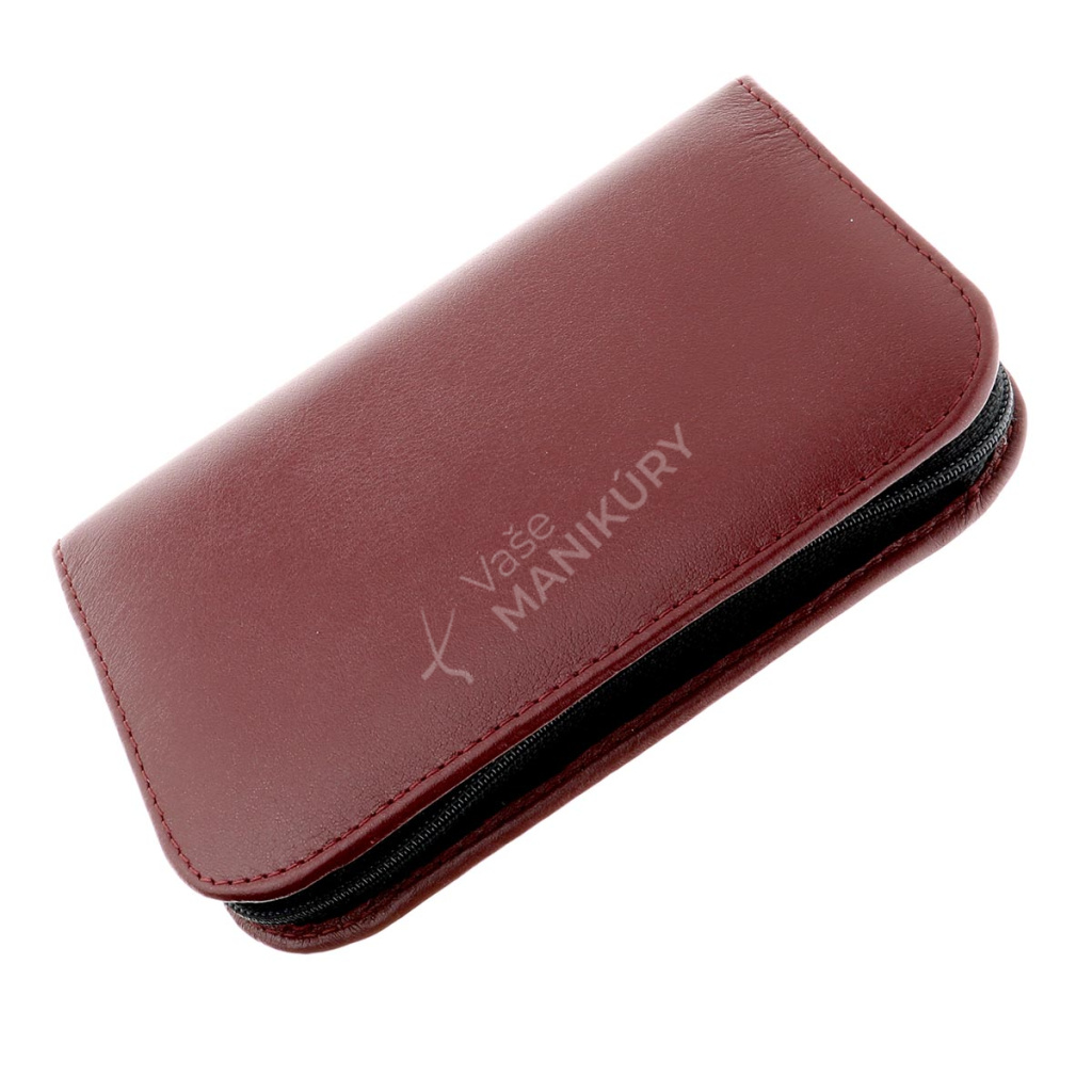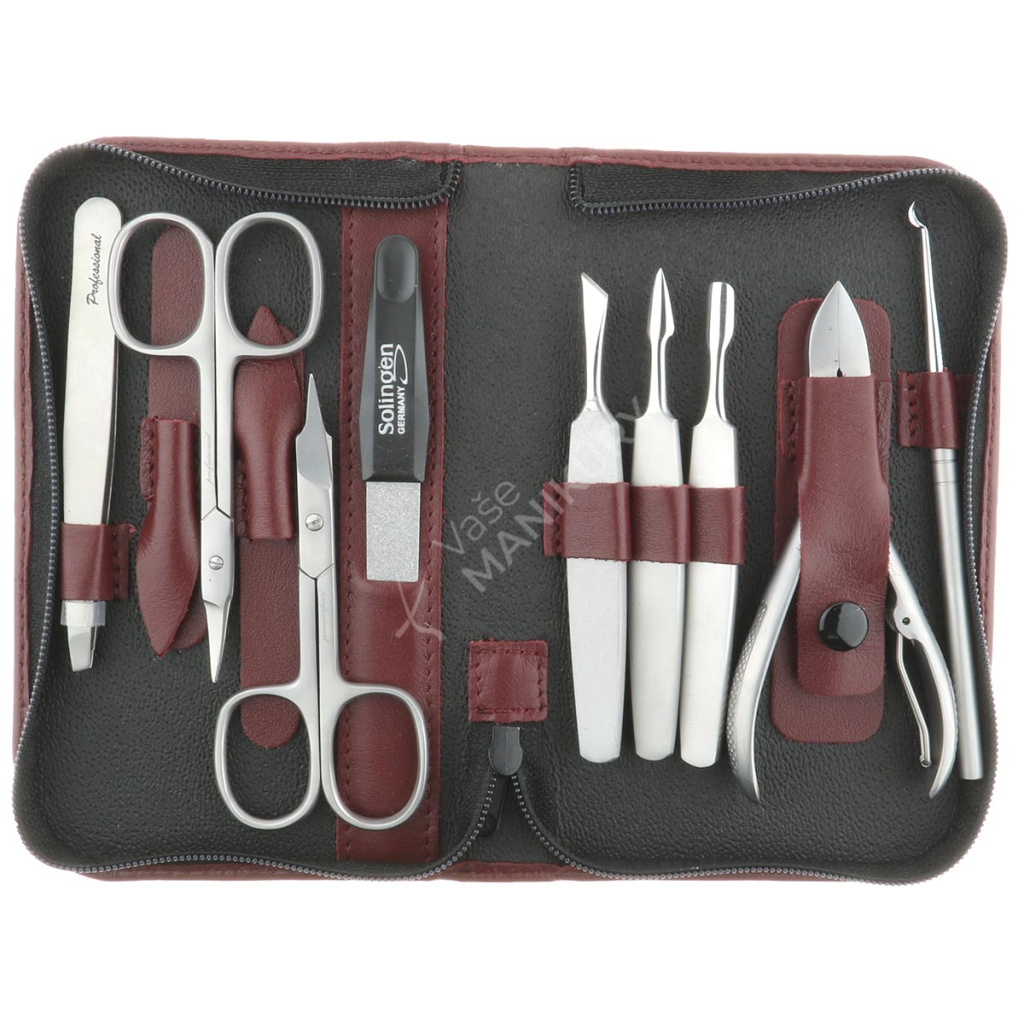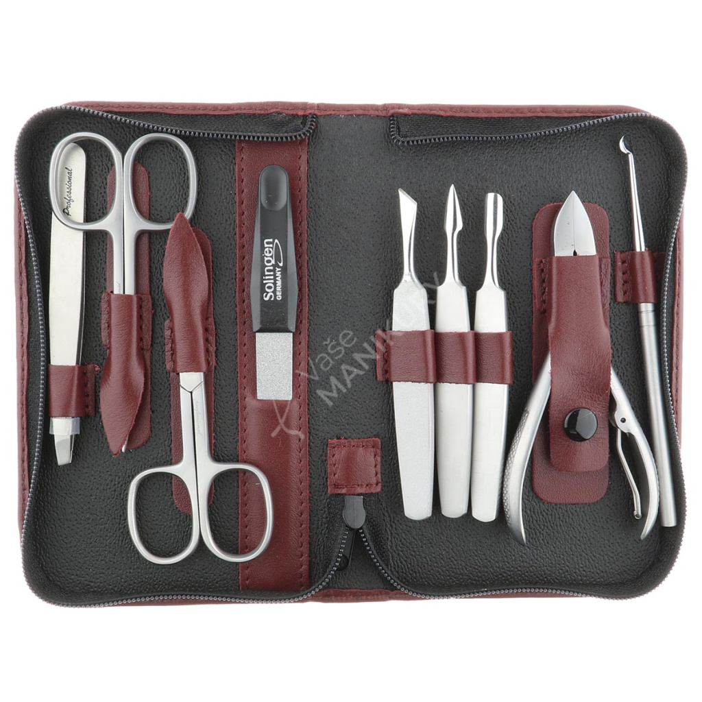 Elegantní 9dílná sada na manikúru s kvalitními nástroji značky Solingen v koženém pouzdru v krásné vínové barvě.