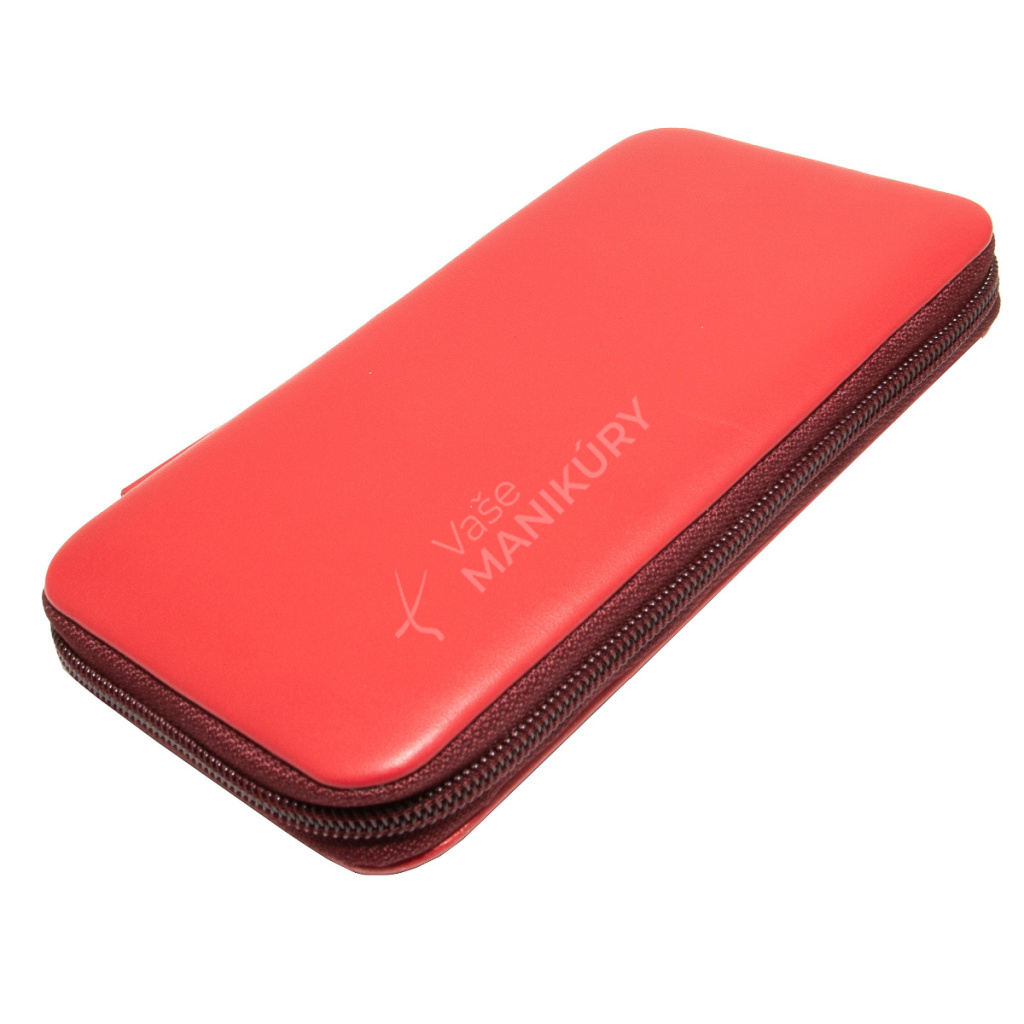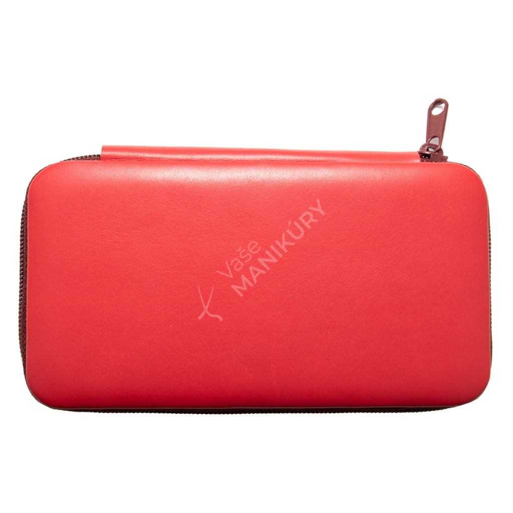 Bohatě vybavená sada na manikúru i pedikúru je uložena v praktickém pouzdru z přírodní kůže v červené barvě a je uzavíratelná na zip.
