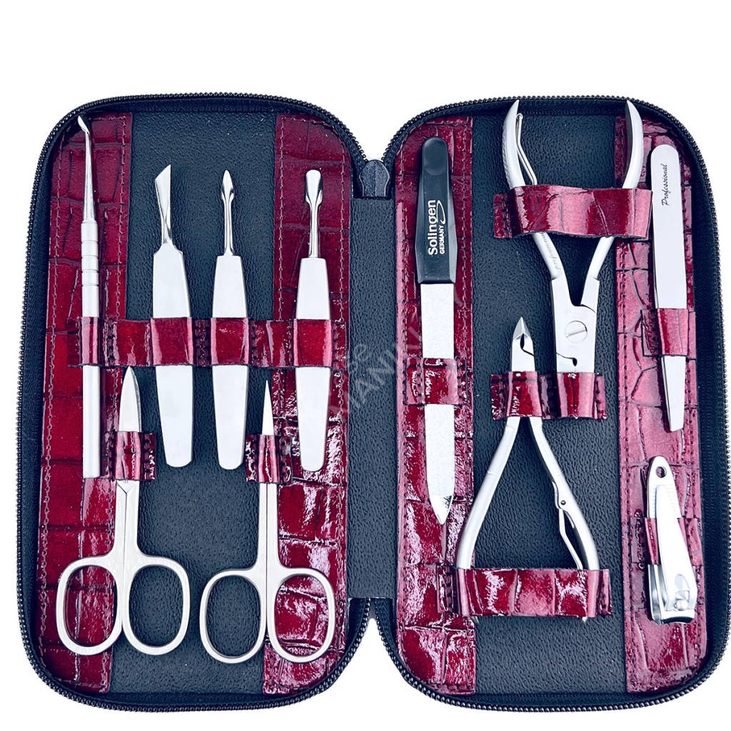 Krásná luxusní manikúra obsahuje nůžky na nehty a nehtovou kůžičku Solingen , pilník Solingen a další nástroje z kvalitní nerezové oceli v matové úpravě řady Professional. Výrobky Solingen i nerezové výrobky jsou proslulé svou dlouholetou trvanlivostí a odolností před opotřebením.
