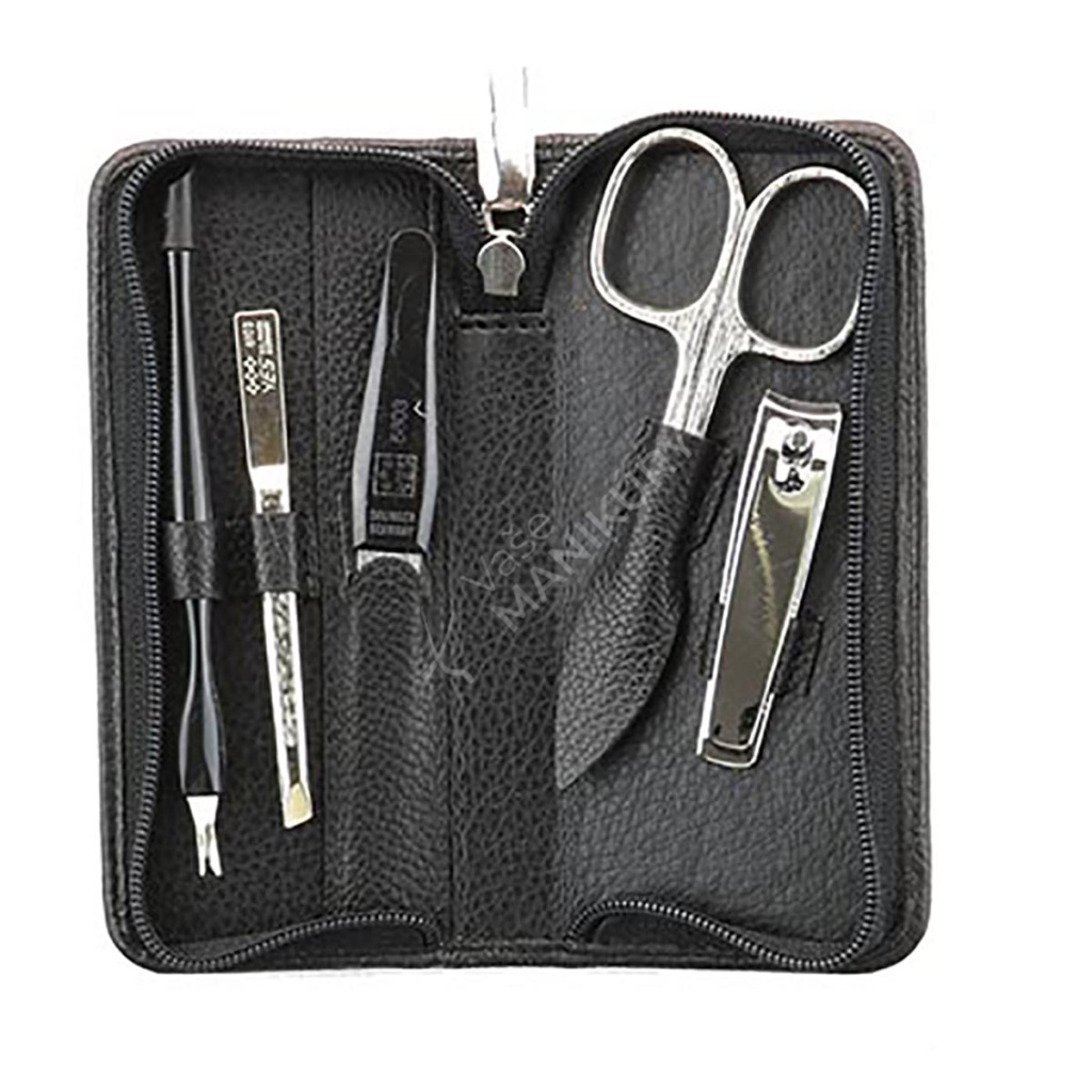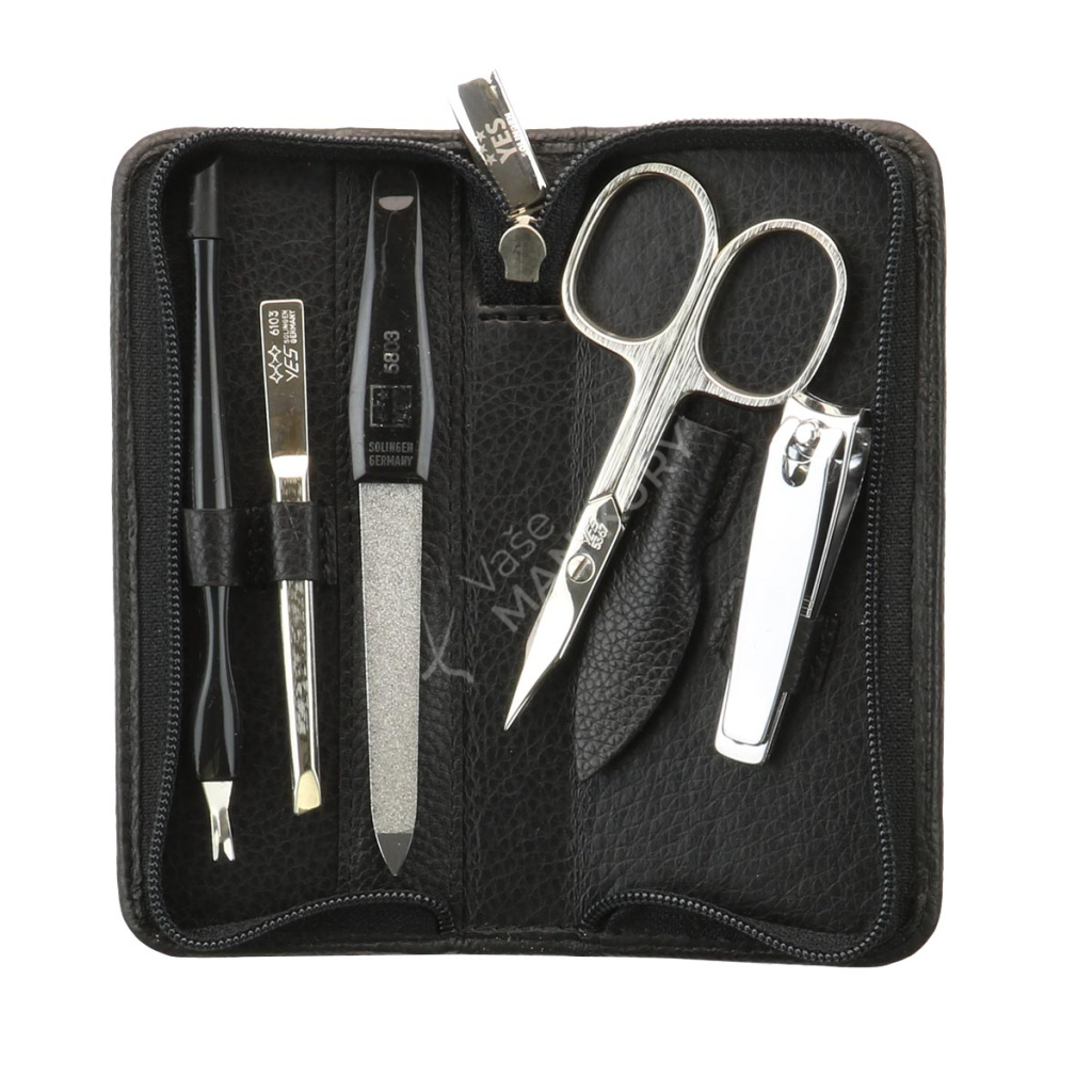 Praktická černá kožená manikúra s prvotřídními ocelovými nástroji německé značky YES Solingen.