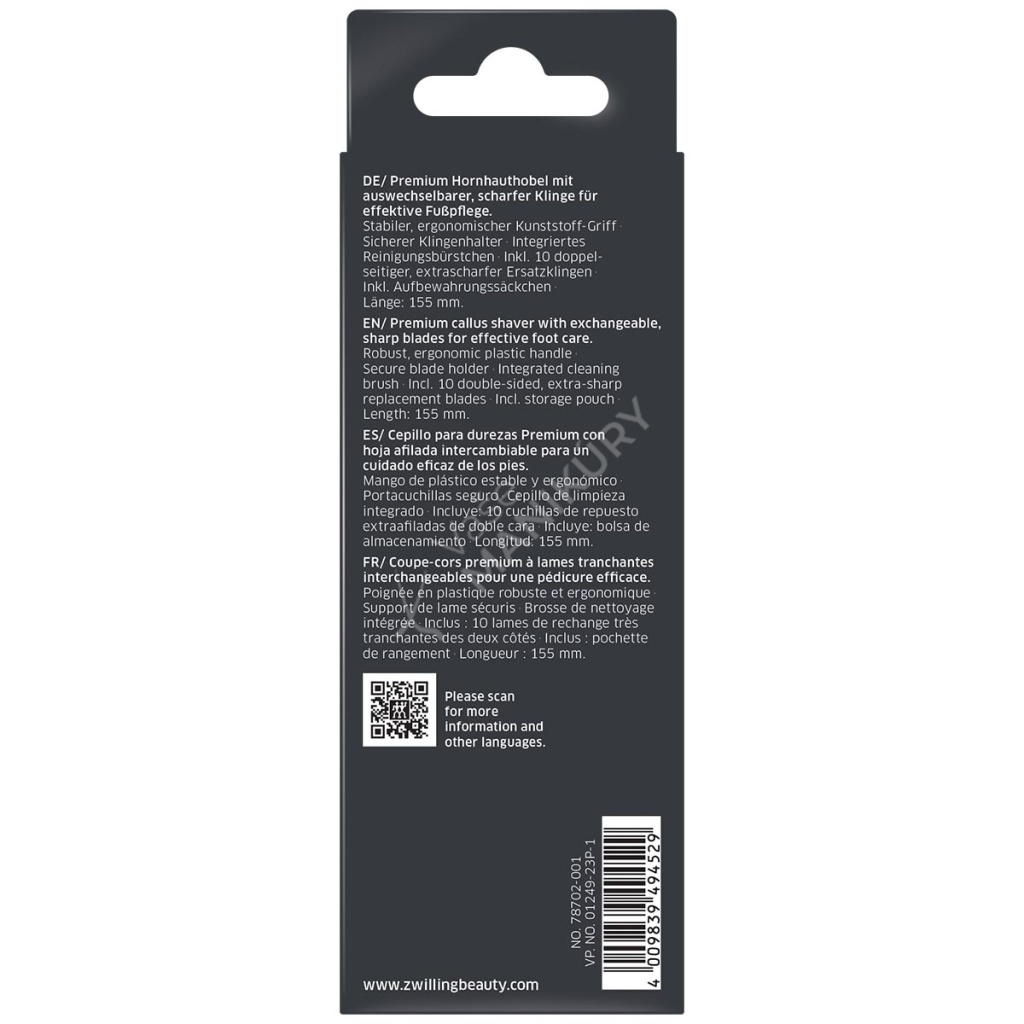 Prémiový seřezávač kůže ZWILLING na odstranění zrohovatělé kůže na patách s integrovaným čistícím kartáčkem.