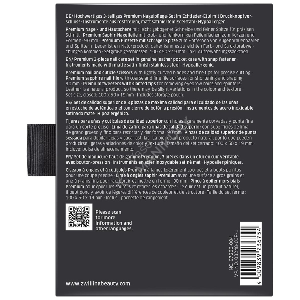 Třídílná manikúrní sada z kolekce Premium od německé značky ZWILLING spojuje špičkovou kvalitu, luxusní design a praktičnost . Elegantní sada obsahuje tři nejčastěji používané nástroje pro péči o nehty a je ideální pro každodenní použití. Tato manikúra je velmi praktická při cestování. Díky svým menším rozměrům se pohodlně vejde do každého zavazadla či kosmetické taštičky.